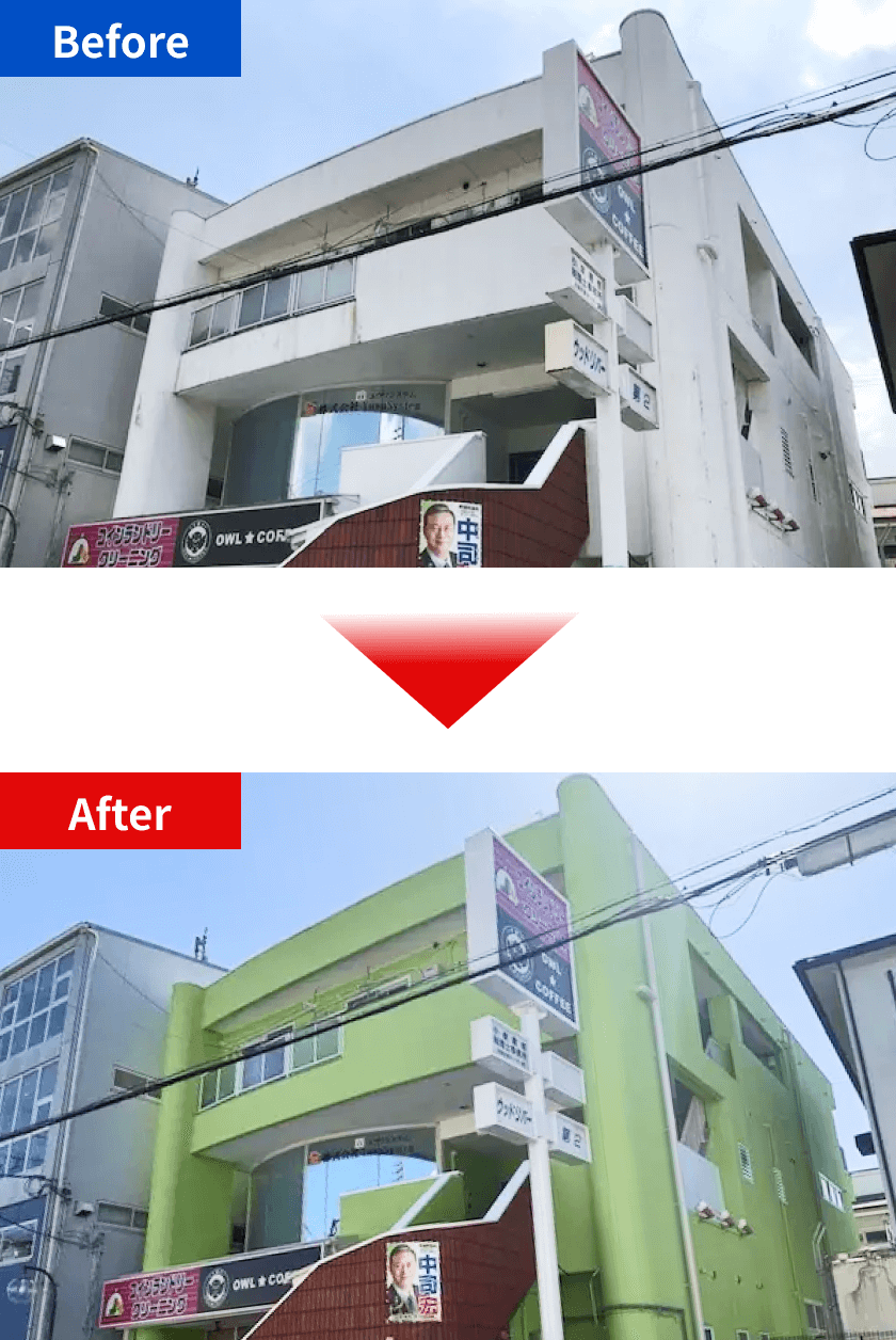 カラーシミュレーションを駆使し、近隣の競合物件に差をつける洗練されたデザインをご提案。建物の保護はもちろん、資産価値を視覚的に高めます。
