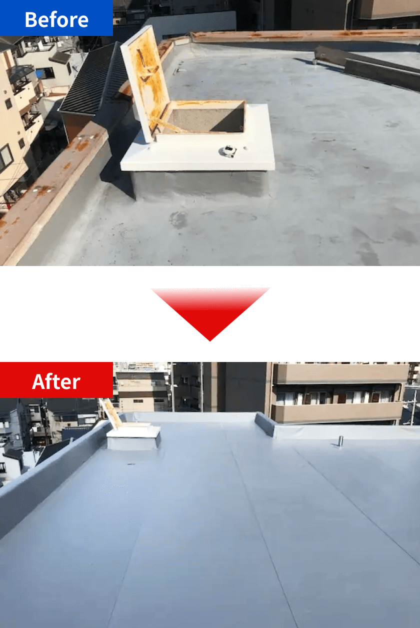 足場を組むタイミングで屋上防水や鉄部塗装も一括で行うため、別々に工事を行うよりもトータルの足場費用を抑えることができ、長期的なコストパフォーマンスに優れています。