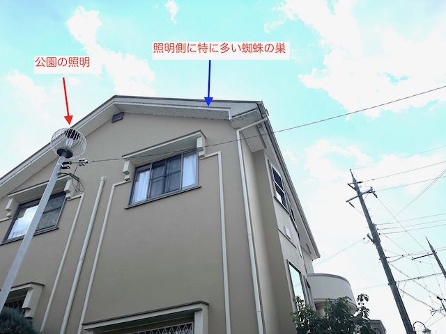 お客様の家の隣には公園が有り、そこに照明がある事も1つの原因となります。