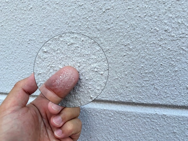今回の写真で分かる事は、手で撫でただけで塗膜の石がパラパラ落ちて来る状態。