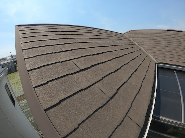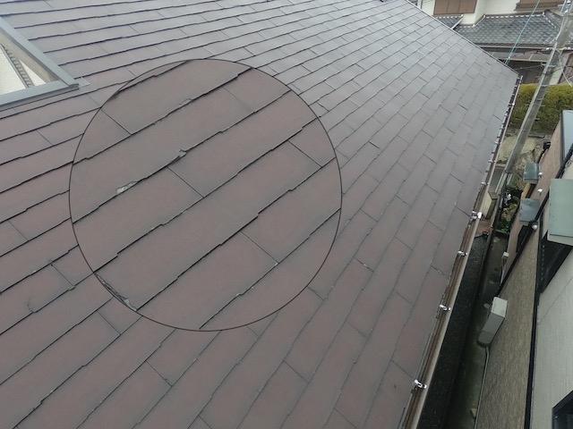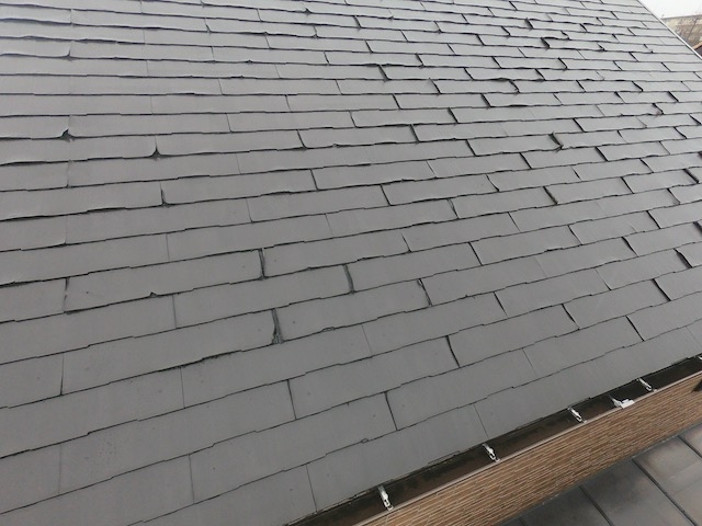この瓦はアスベストが禁止された第二世代スレート屋根で2008年から7年間の間に発売された屋根材です。