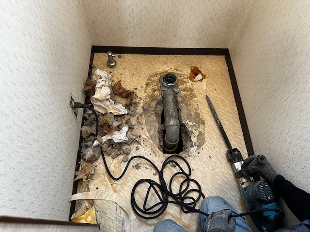 トイレの配管がまさかの! リフォーム工事はたまに色んなトラブルがあります。