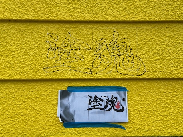 私は最後にメンバーから塗魂ペインターズのロゴを記念に外壁に描いて欲しいとのことで、
