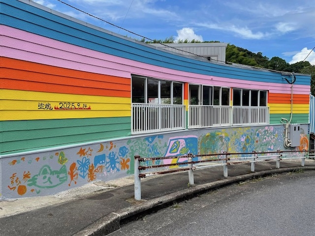 沢山のメンバーで交代に塗装して、建物は虹色で仕上がりました。