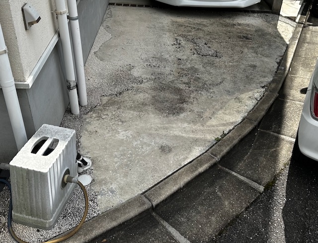 たまにお客様の家で駐車場に樹脂土間(洗い出しの様な土間)が有り、ほぼポロポロ石が取れてしまっています。