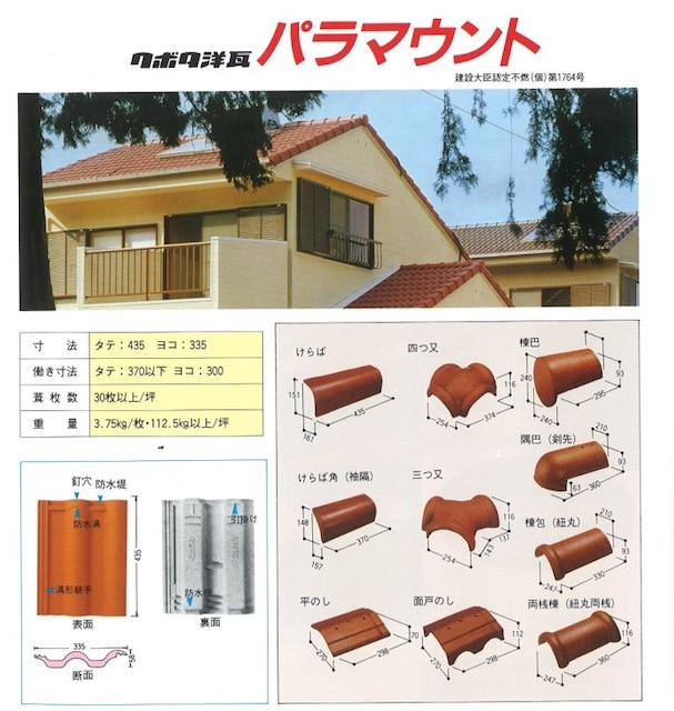 クボタ製の「パラマウント」という瓦も存在しますが全て廃盤の瓦で製造はされていません。