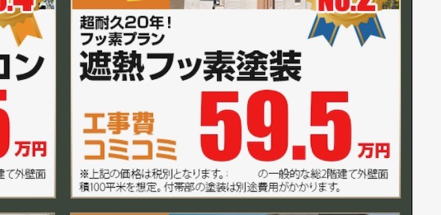 などの表記はチラシ専用の表示の仕方で、実際にはその様な金額では施工が出来ない仕組みになっています。
