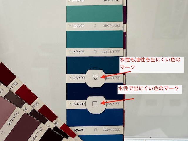 このマークがあると水性では出にくい色になりますのでちょっとした知識として確認してみてください(^^)