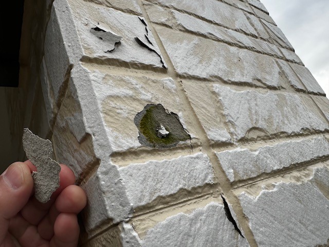 その中でサイディングの釘で留めて有る箇所に一部凍害の様な剥離を確認。