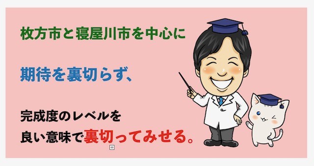 その中でも枚方市では成田さんの様に打ち合わせから工事まで全てを社員の皆さんでしてくれる会社がない