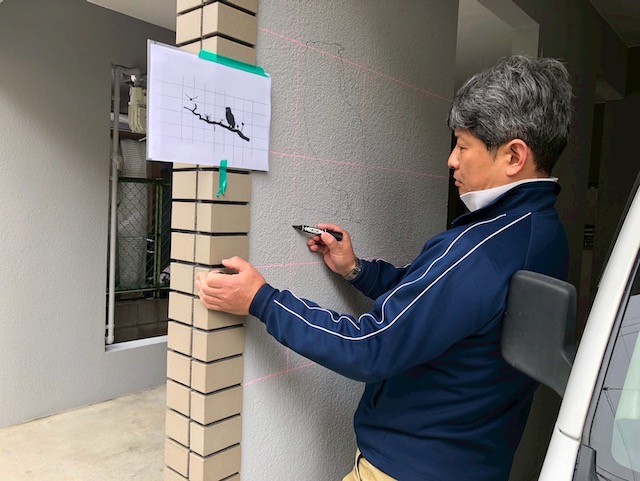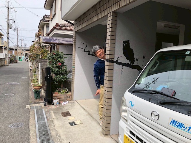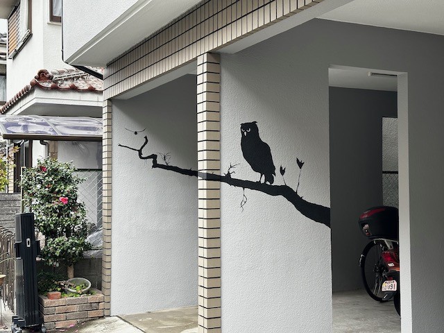 お客様はホームページや噂から成田塗装のこの様な情報を知ってくれていて工事の打ち合わせの際にリクエストをくれるのですが、今回の枚方市のお客様はフクロウのイラストが希望でした。