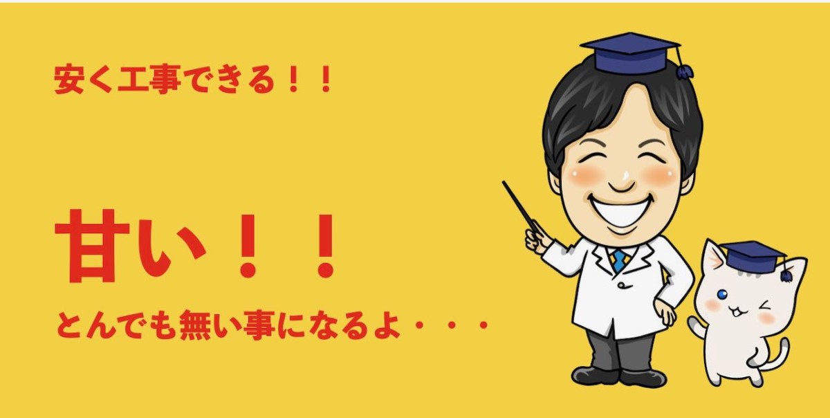 安く施工して貰っても、気持ちがしんどく悩み事ばかりで全く元を取れる状態ではなくなるでしょう。