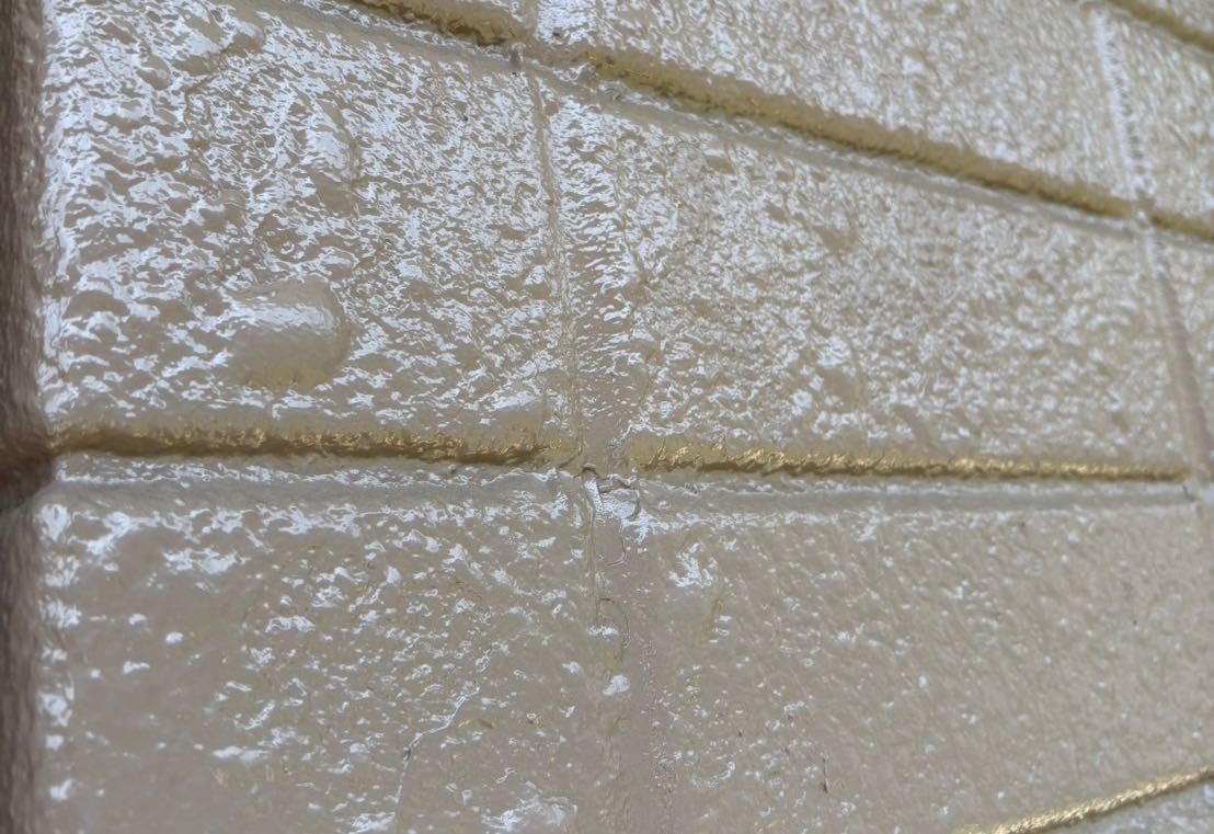 しかも下地は多彩模様の外壁で、大祭模様にはクリア塗料の樹脂が配合されているので、