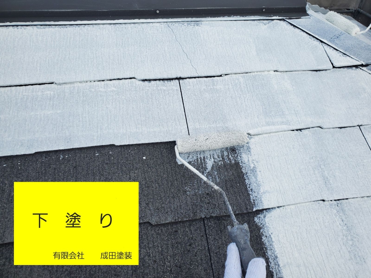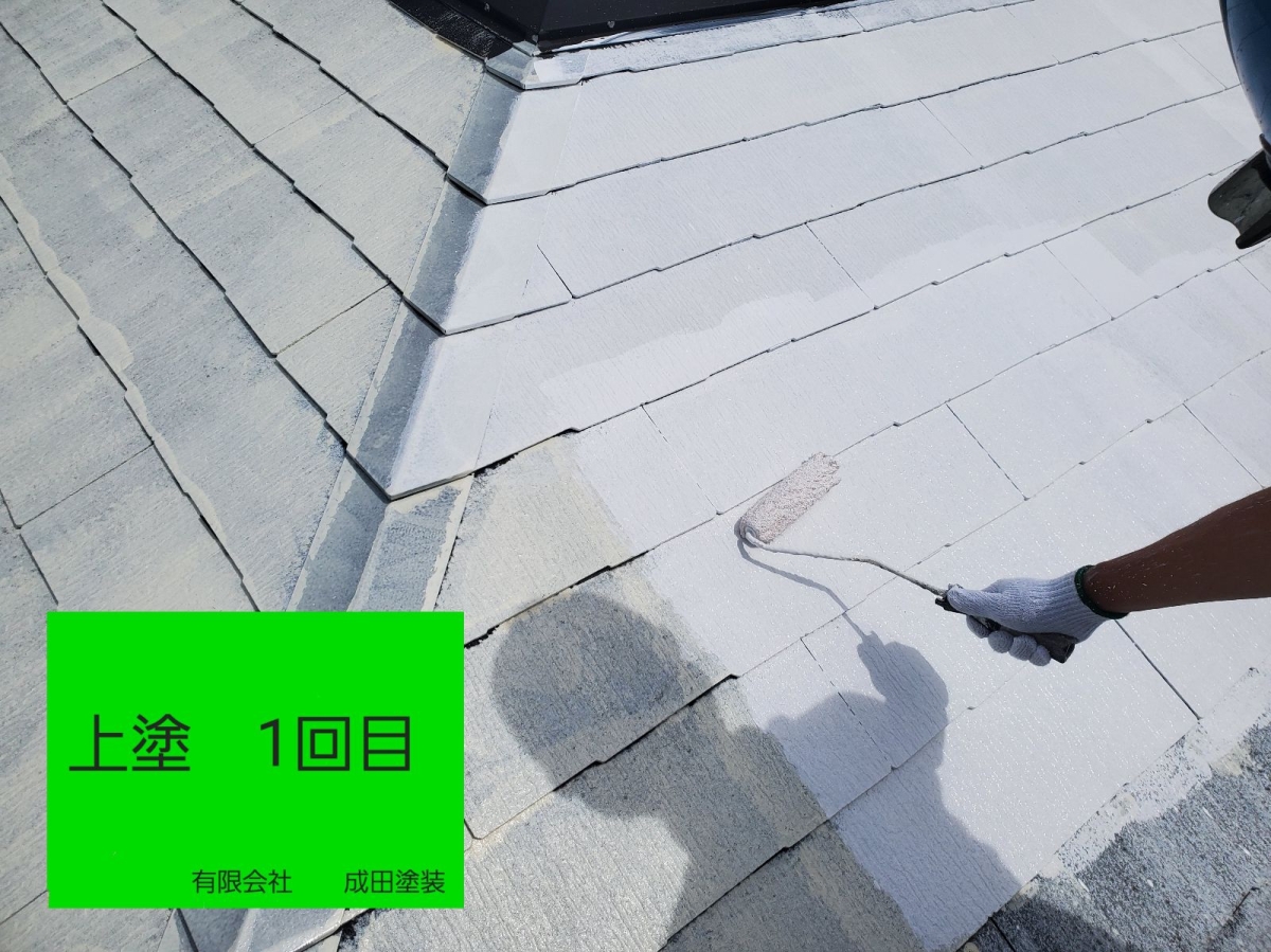 枚方市Y様邸 こんにちはっ!!! 成田塗装の家原です(*´ω`*) 本日は枚方市のY様邸の屋根塗装です♪ 下塗りにサーモテックシーラーを1回塗装し 上塗り塗装には断熱ガイナを塗装しました( *´艸`) ガイナは屋根や外壁に塗装することで太陽光を反射して 吸収した熱を効率よく逃がしてくれます(*^^*) 断熱効果が出るようにしっかり丁寧に塗り分けて 塗装の層を作ることが大切です(`・ω・´)ゞ 2025/08/28
