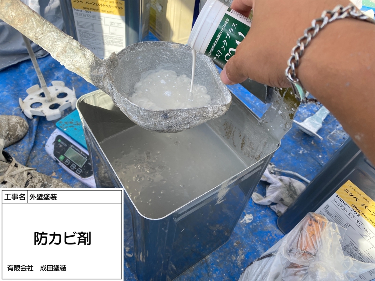 寝屋川市N様 こんにちはっ!!! 成田塗装の家原です(*´ω`*) 本日は寝屋川市のN様の防カビです♪ 防カビ塗料はカビの発生を抑制する成分が配合された塗料で 高圧洗浄などの処理で既存のカビを綺麗に取り除いたあとに 成田塗装では塗料に混ぜて塗布していきます(*^^*) しっかり下地処理を行ってから塗布することで 効果を発揮しお家の美観カビから守ってくれます('◇')ゞ 2025/09/08