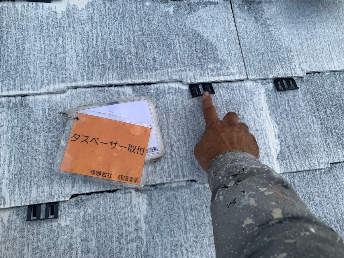寝屋川市N様邸 こんにちはっ!!! 成田塗装の家原です(*´ω`*) 本日は寝屋川市のN様邸のタスペーサーの設置工事です♪ 屋根の下塗り塗装の後にタスペーサーを設置していきます!(^^)! 隙間を開けることで屋根の通気、排気ができ 屋根の内部に水が溜まって雨漏りが発生するのを防いでくれます\(^o^)/ 2025/09/16