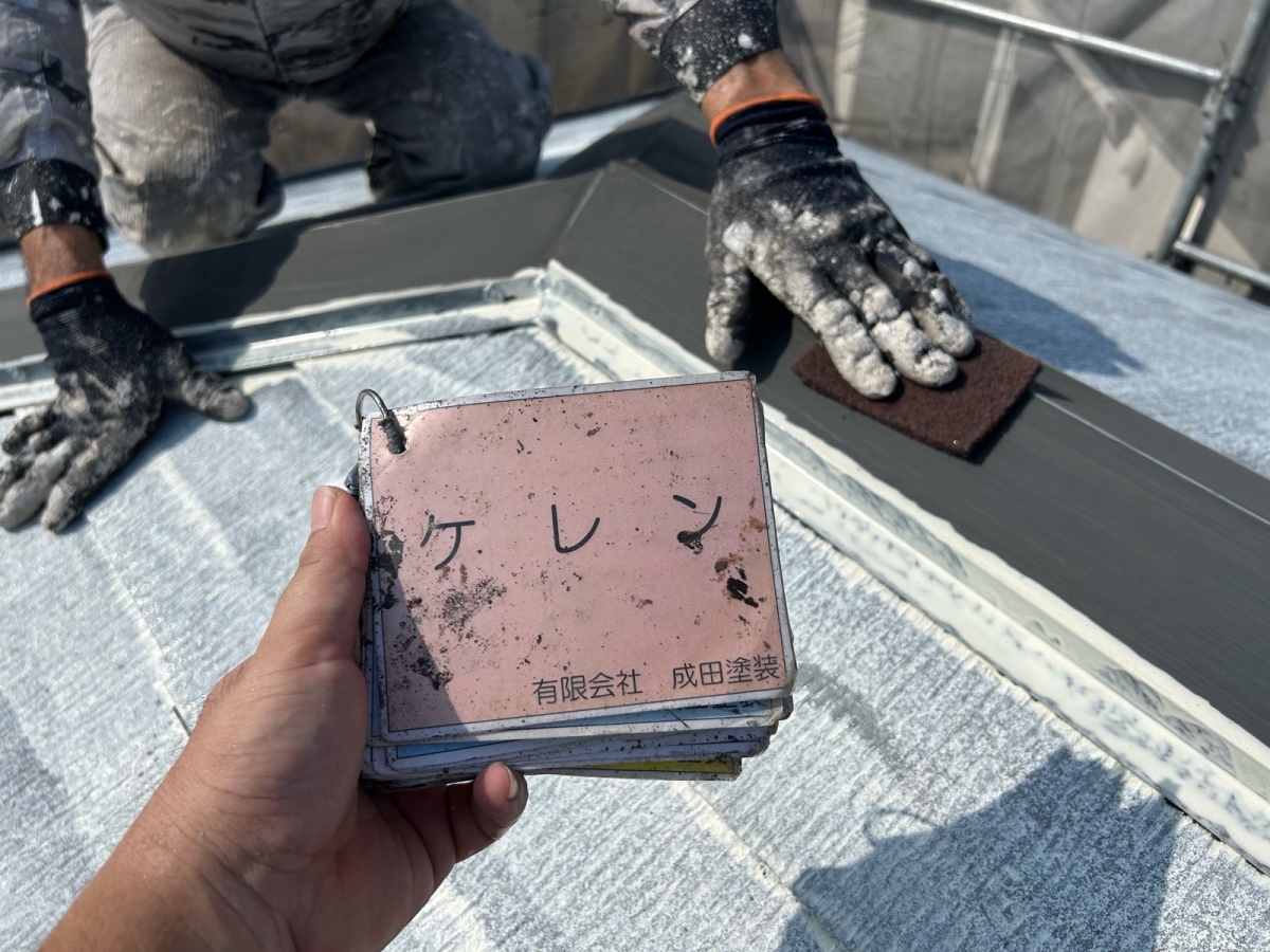 寝屋川市N様邸 こんにちはっ!!! 成田塗装の家原です(*´ω`*) 本日は寝屋川市のN様邸の棟板金の塗装です♪ ケレン作業を行いこの時に釘が浮いていたら打ち直します!(^^)! そのあと錆止め塗料を塗っていきます( *´艸`) 打ち直した釘の部分を抜けにくくするためシーリングで塞ぎます! そのあと上塗りをして乾いたら完成です(●^o^●) 屋根の板金は雨水や雪などを家の中に入れないために とても重要な部分なので劣化をほっておくと 板金が飛んでしまったり雨漏りをしてしまう可能性があるので しっかり修理して塗装します!!! 2025/09/19