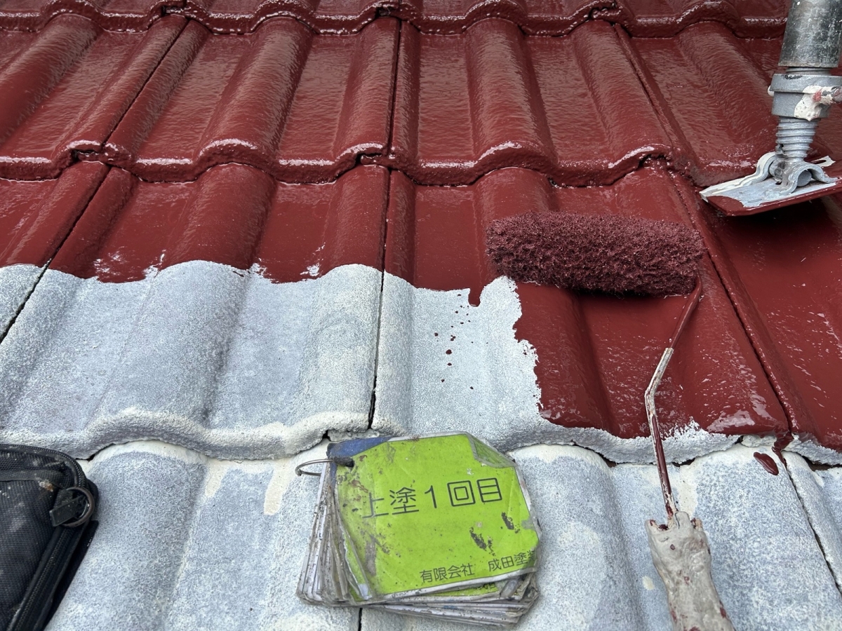 寝屋川市K様邸 こんにちはっ!!! 成田塗装の家原です(*´ω`*) 本日は寝屋川市K様邸の屋根塗装のです♪ 下塗りを行ってから上塗りにくーるちはっ!!! 成田塗装の家原です(*´ω`*) 本日は寝屋川市K様邸の屋根塗装のです♪ 下塗りを行ってから上塗りにクールくんマイティシリコンを2回 塗装しました\(^o^)/ この塗料は下塗りをしなくてもいい塗料ですが 成田塗装では下塗りをしっかり行ってより強固な屋根にします(^^)/ 乾式コンクリート瓦専用の遮熱塗料で 屋根から室内に伝わる熱を抑えてくれます('◇')ゞ 2025/09/22