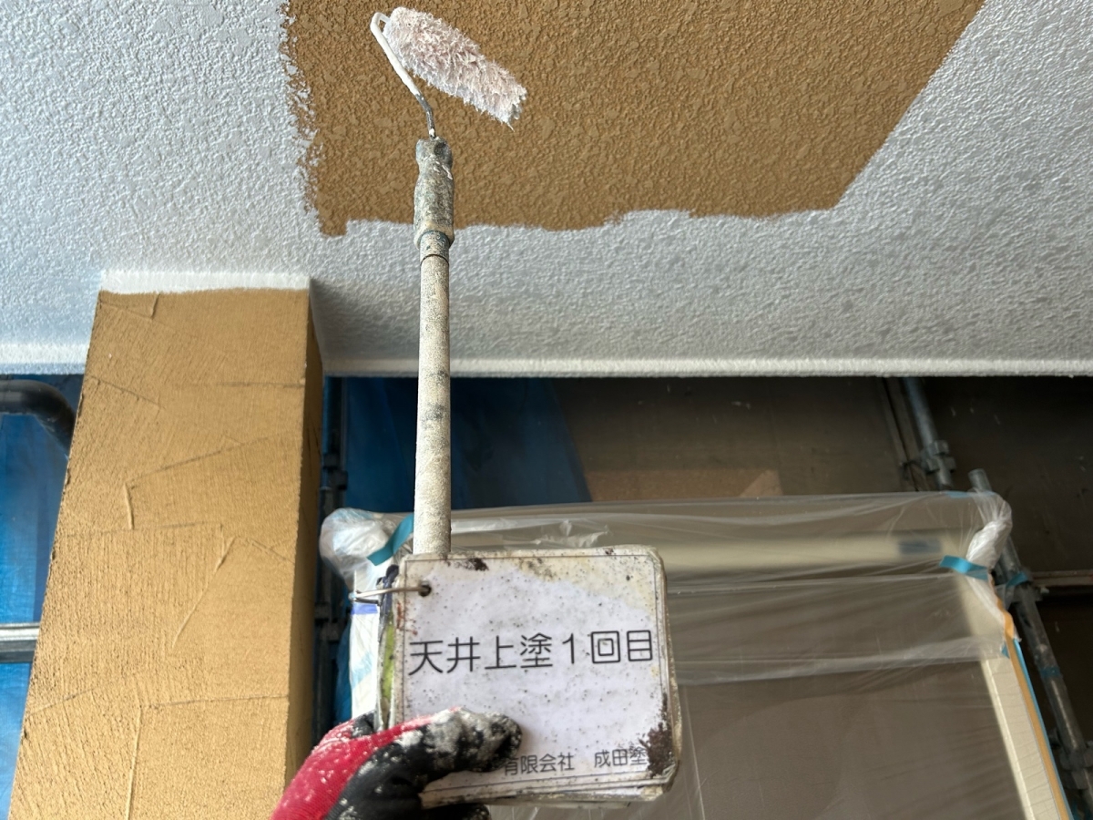 寝屋川市K様邸 こんにちはっ!!! 成田塗装の家原です(*´ω`*) 本日は寝屋川市のK様邸の軒天井の上塗りです♪ 成田塗装では軒天井用外壁と同じ色で塗らず 軒天井用の塗料で仕上げます(●´ω`●) 軒天上に色を変えることで家全体の仕上がりに メリハリができます\(^o^)/ 2025/09/25