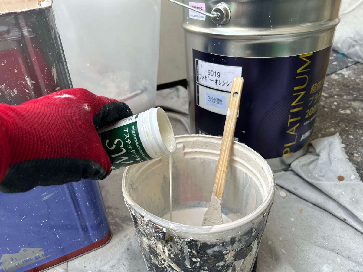 寝屋川市N様邸 こんにちはっ!!! 成田塗装の家原です(*´ω`*) 本日は寝屋川市のN様邸の防カビ剤です♪ 急に外壁にカビやコケが発生したら塗膜の防水機能の低下のサインです(>_<) 防カビ塗料とはカビの発生を抑制する成分が配合された塗料で 高圧洗浄などで既存のカビなどを取り除いた後に塗布します( *´艸`) 成田塗装では塗料に混ぜて塗っていきます(^_-)-☆ 2025/10/06