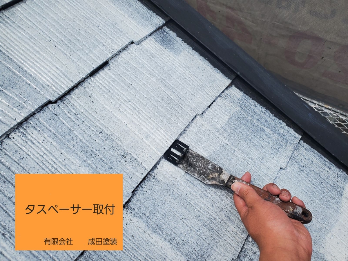 ね寝屋川市T様邸 こんにちはっ!!! 成田塗装の家原です(*´ω`*) 本日は寝屋川市のT様邸のタスペーサーの設置工事です♪ 屋根の下塗り塗装の後にタスペーサーを設置していきます(`・ω・´)ゞ タスペーサーは塗装することで屋根の表面にある溝を 塞いでしまうこともあり塞いでしまうと雨水の逃げ場がなくなり 下地の腐食、雨漏りに繋がる可能性があるので タスペーサーを設置してそれを防ぎますヾ(@⌒ー⌒@)ノ 2025/10/11