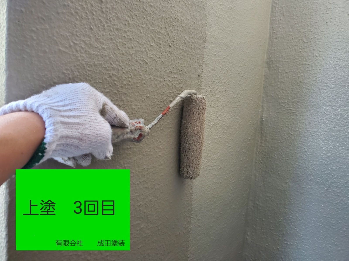 寝屋川市T様邸 こんにちはっ!!! 成田塗装の家原です°˖✧◝(⁰▿⁰)◜✧˖° 本日は寝屋川市のT様邸の外壁塗装の上塗りです♪ 断熱ガイナを上塗り塗装に3回塗装しました(*´ω`*) 断熱ガイナは断熱効果が出るようにしっかり丁寧に塗り分けて 塗装の層を作ることが大切です(`・ω・´)ゞ 冬は屋内に熱が逃げくく 夏は屋外の熱が侵入しにくい という効果が期待できます(●^o^●) 2025/10/18
