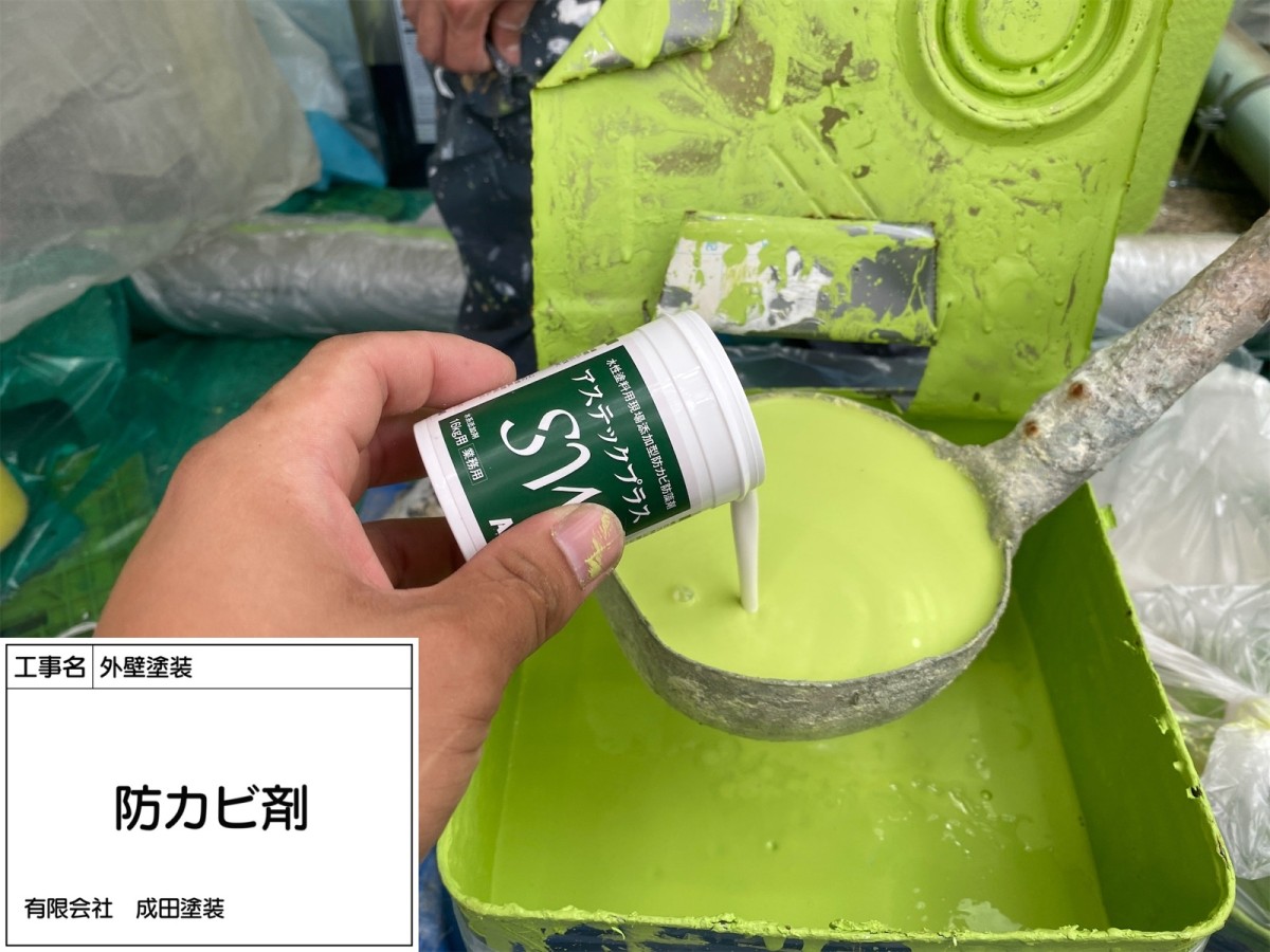 枚方市M様 こんにちはっ!!! 成田塗装の家原です°˖✧◝(⁰▿⁰)◜✧˖° 本日は枚方市M様の防カビ剤です♪ 防カビ剤はカビの発生、、増殖を防ぐことができる塗料です(^_-)-☆ 高圧洗浄などの処理で既存のカビを取り除いた後に塗布することで 効果を発揮しお家の美観をカビから守ってくっれます(^^)/ 成田塗装では塗料に混ぜてお家に塗装していきます\(^o^)/ 2025/11/08