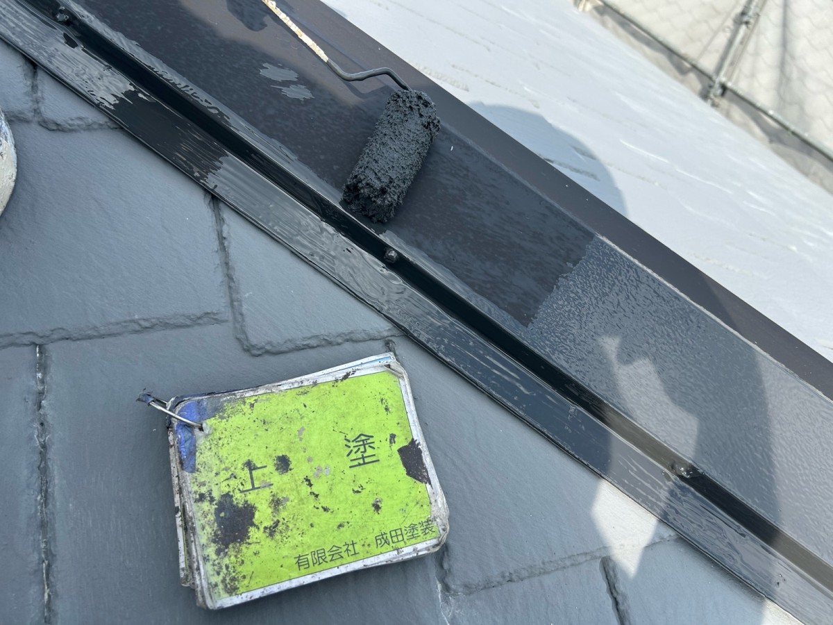 枚方市Y様邸 こんにちはっ!!! 成田塗装の家原です°˖✧◝(⁰▿⁰)◜✧˖° 本日は枚方市のY様邸の屋根の棟板金の塗装です♪ ペーパーを使って下地処理作業してから この時釘が浮いていたら打ち直します(^_-)-☆ 錆止め塗料を塗って打ち直した部分の釘の上から 抜けにくくするためシーリングで塞いでおきます(/ω\) そのあとに上塗り塗装して乾いたら完成です\(^o^)/ 屋根の板金は雨水や雪などを家の中に入れないために重要な部分です! 劣化を放っておくと板金が飛んでしまったり雨漏りをしてしまう可能性もあるので しっかり修理してから屋根塗装していきます(`・ω・´)ゞ 2025/11/08