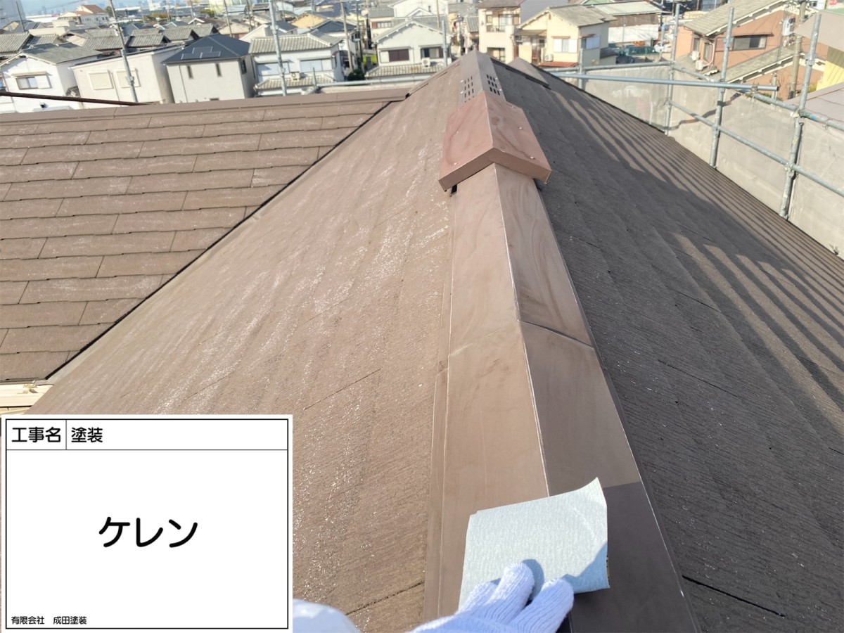 四条畷市M様邸 こんにちはっ!!! 成田塗装の家原です°˖✧◝(⁰▿⁰)◜✧˖° 本日は四条畷市のM様邸の棟板金の塗装です♪ ケレン作業をしっかり行ってからコーキングしていきます('◇')ゞ 錆止め塗料を塗装してから上塗り塗装をしていきます(`・ω・´)ゞ 屋根の板金は雨水や雪などを入れないためにとても大切な部分です! 劣化を放っておくと板金が飛んでしまったり雨漏りをしてしまう といった可能性もあるのでしっかり修理してから塗装します♪ 2025/11/27