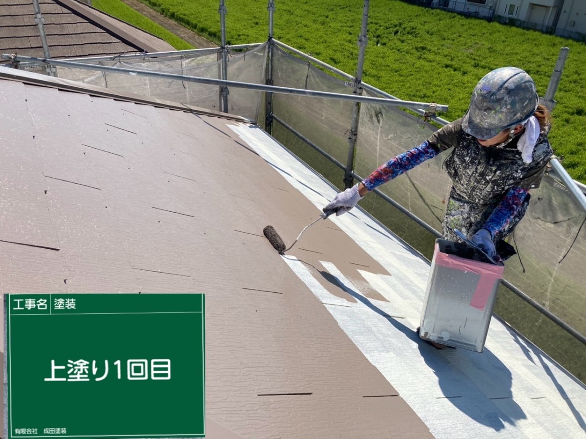 四条畷市M様邸 こんにちはっ!!! 成田塗装の家原です°˖✧◝(⁰▿⁰)◜✧˖° 本日は四条畷市のM様邸の屋根塗装です♪ 下塗りにサーモアイシーラーを1回塗装してから 上塗りにはサーモアイSiを2回丁寧に塗装しました\(^o^)/ この塗料はシリコン樹脂を使用しているため 耐久性が高くフッ素系樹脂塗料に次いで耐候性や光沢保持性に 優れている塗料です(^^)/ また遮熱機能により屋根の蓄熱を制御してくれます(^_-)-☆ 2025/11/29
