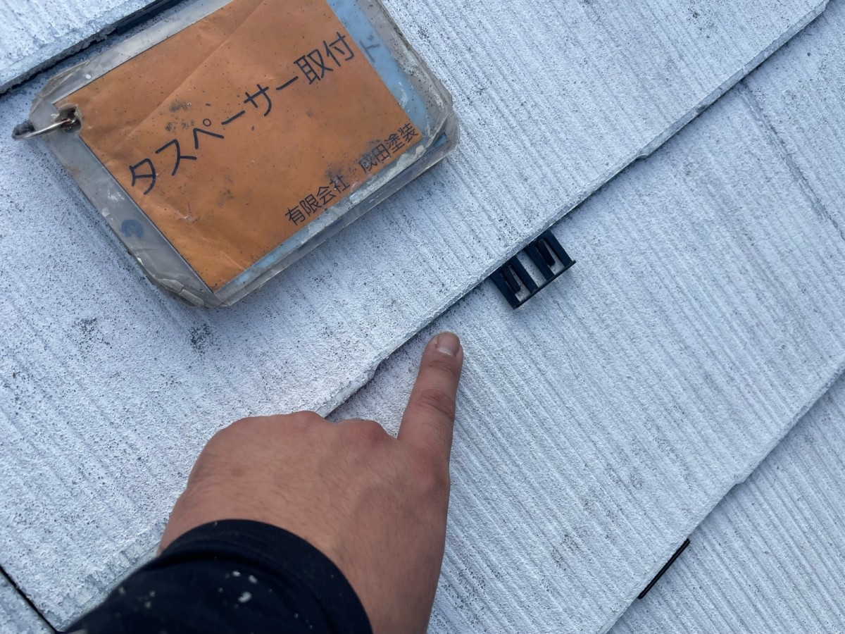 大東市M様邸 こんにちはっ!!! 成田塗装の家原です°˖✧◝(⁰▿⁰)◜✧˖° 本日は大東市のM様邸の屋根のタスペーサーの設置工事です♪ タスペーサーとは屋根と屋根の間に挟み込む道具で 屋根の表面にある溝を塗料で塞いでしまうこともあり 塞いでしまうと雨水の逃げ場がなくなり屋根下地の腐食、 雨漏りに繋がるのでそれを防いでくれます\(^o^)/ 2025/12/20