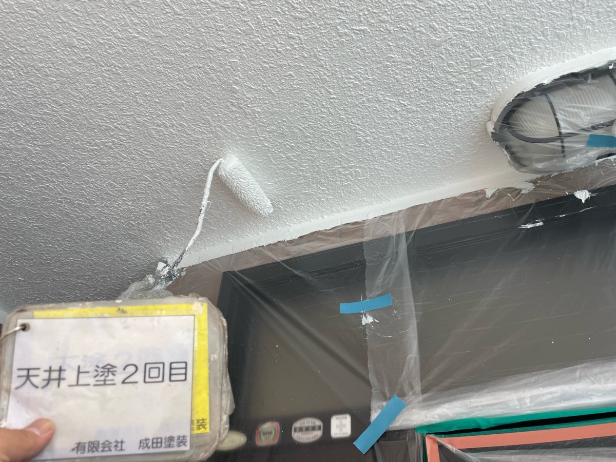 大東市M様邸 あけましておめでとうございます。 成田塗装の家原です°˖✧◝(⁰▿⁰)◜✧˖° 本年もよろしくお願いします\(^o^)/ 本日は大東市M様邸の軒天井の上塗りです♪ 成田塗装では軒天井の上塗りを外壁と同じ色で塗らず軒天井用の塗料で仕上げます(^o^) 軒天上の色を変えることでお家全体の仕上がりにメリハリを付けることができます!(^^)! この塗料にはカビの抑制効果もあり溶剤塗料特有の臭いも抑えられます\(^o^)/ 塗装の際、縦方向、横方向と十字を切って2回塗装することで 仕上がりをより綺麗にすることができます(●^o^●) 2026/01/08