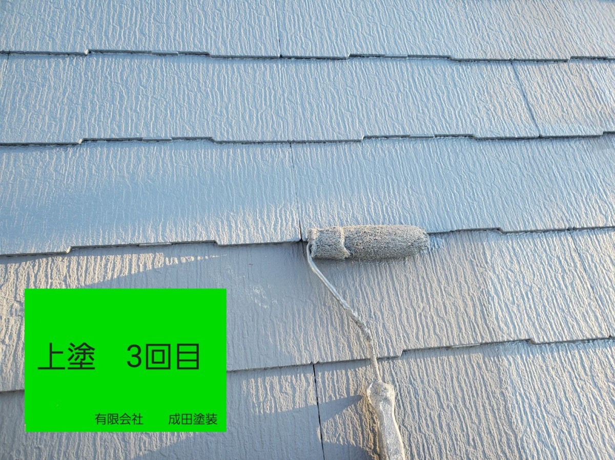 河内長野市H様邸 こんにちはっ!!! 成田塗装の家原です°˖✧◝(⁰▿⁰)◜✧˖° 本日は河内長野市H様邸の屋根塗装です♪ 下塗りはサーモテックシーラーを1回塗装して 上塗り塗装は断熱ガイナを3回塗装しました( *´艸`) ガイナは屋根塗装や外壁塗装に使用すると 太陽光を反射して吸収した熱を効率よく逃がしてくれます\(^o^)/ 断熱効果が出るようにしっかり丁寧に塗り分けて 塗装の層を作ることが大切です(`・ω・´)ゞ 2026/01/30