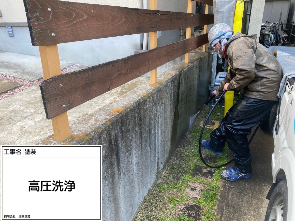 枚方市H様邸 こんにちはっ!!! 成田塗装の家原です°˖✧◝(⁰▿⁰)◜✧˖° 本日は枚方市H様邸の高圧洗浄作業です♪ 塗装の際に汚れやカビ、チョーキングという塗膜が粉化する現象などがあると 新しい塗料が定着しにくくなります((+_+)) 高圧洗浄機を使用してこれらを完全に除去することで 塗料の密着性を向上させてくれます\(^o^)/ 2026/03/06