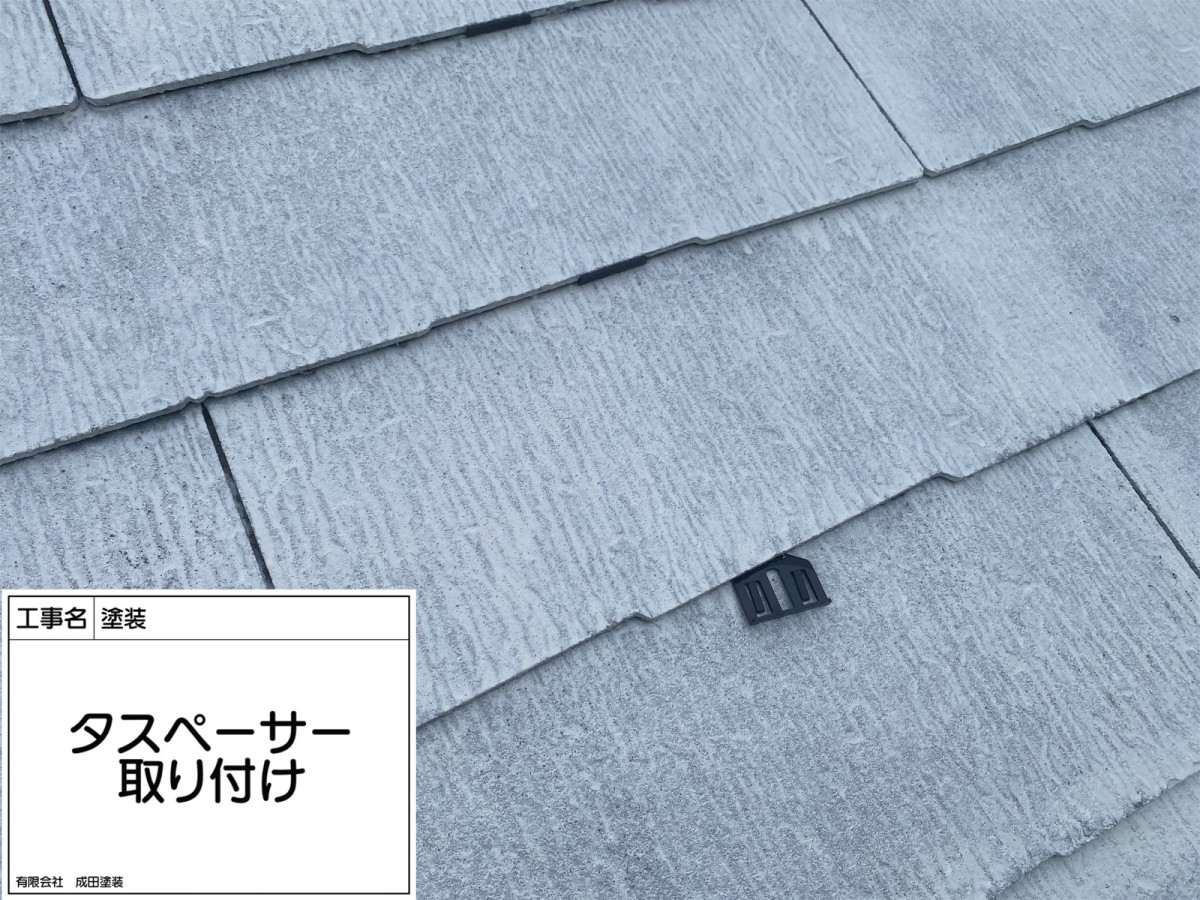 枚方市H様邸 こんにちはっ!!! 成田塗装の家原です°˖✧◝(⁰▿⁰)◜✧˖° 本日は枚方市H様邸のタスペーサーの設置工事です♪ 屋根の下塗り塗装後にタスペーサーの設置を行います(*^^*) タスペーサーは屋根と屋根の間に挟み込む道具で 隙間を開けることで屋根の通気、排水ができ 屋根の内部に水が溜まって雨漏りが発生するのを防げます( *´艸`) 2026/03/08