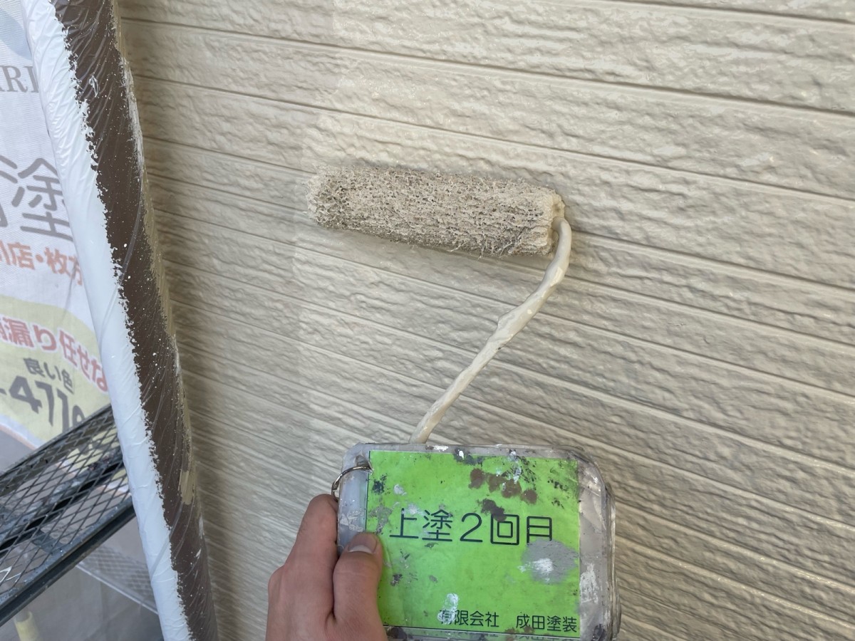 寝屋川市S様邸 こんにちはっ!!! 成田塗装の家原です°˖✧◝(⁰▿⁰)◜✧˖° 本日は寝屋川市S様邸の外壁塗装です♪ 下塗りはプレミアムSSシーラーとホワイトフィラーを2回塗装してから 上塗り塗装していきます\(^o^)/ 上塗りはリファインMS-IRを塗装しました('◇')ゞ このと塗料は塗膜の表面が極めて優れた親水性で 水となじみやすい性質を持っているため 塗膜に汚れが付着しても汚れが付きにくく付着した汚れも 雨水で洗い流してくれます( *´艸`) 2026/03/27