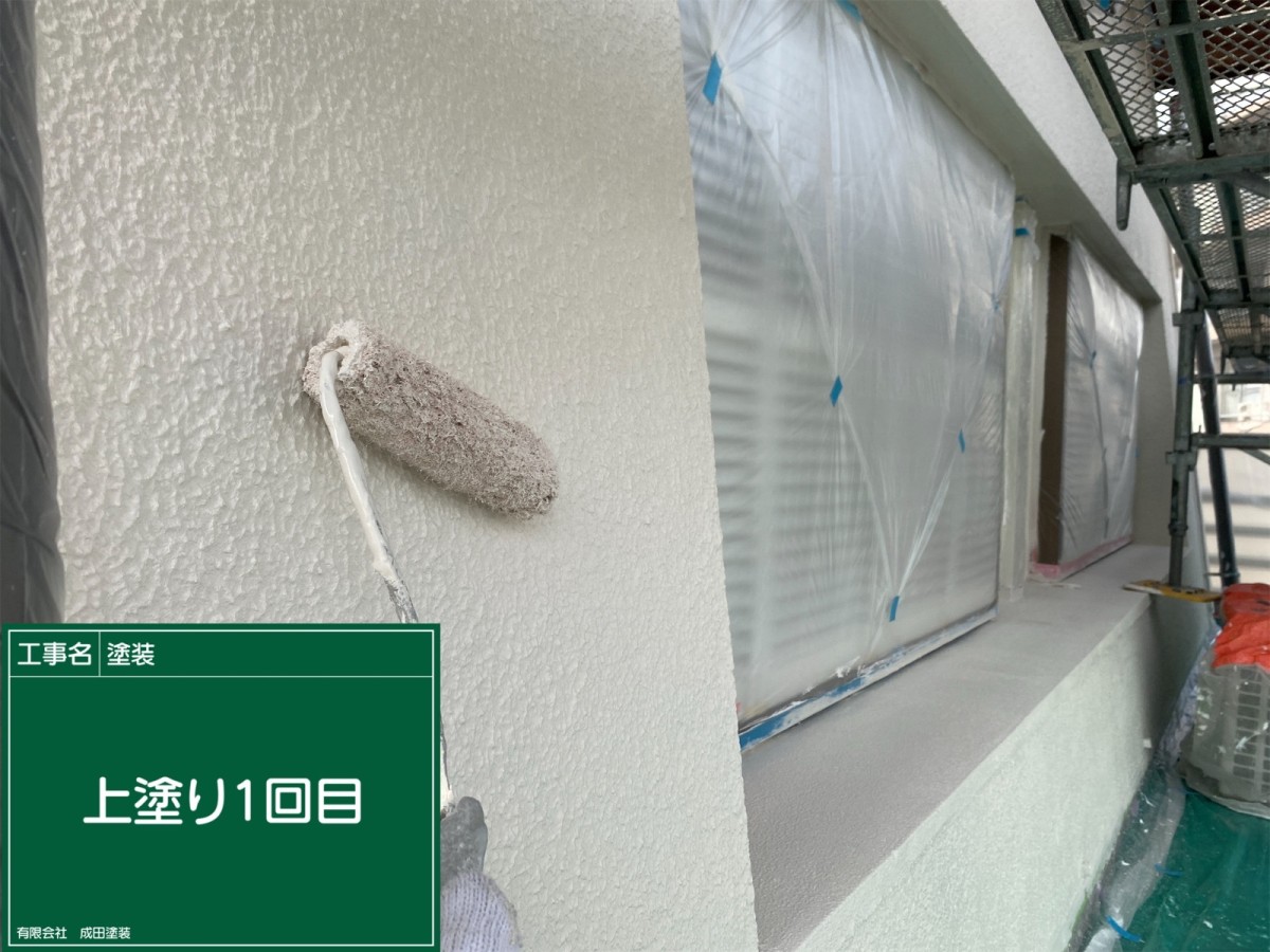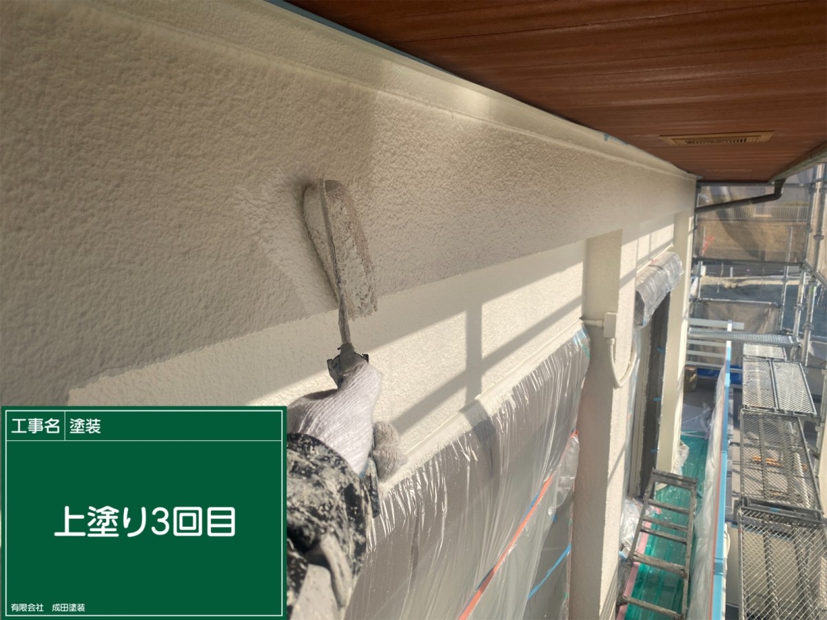 枚方市N様邸 こんにちはっ!!! 成田塗装の家原です°˖✧◝(⁰▿⁰)◜✧˖° 本日は枚方市N様邸の外壁塗装の上塗りです♪ 下塗りはパーフェクトフィラーを2回塗装します(*^^*) 上塗りは断熱ガイナを3回塗り重ねて塗装しました( *´艸`) 断熱ガイナは塗り重ねて塗装することで断熱効果を発揮してくれます(*´ω`*) ガイナを屋根や外壁に塗装することで太陽光を反射して 吸収した熱を効率よく逃がしてくれます\(^o^)/ 2026/03/31