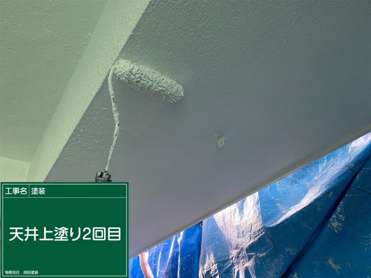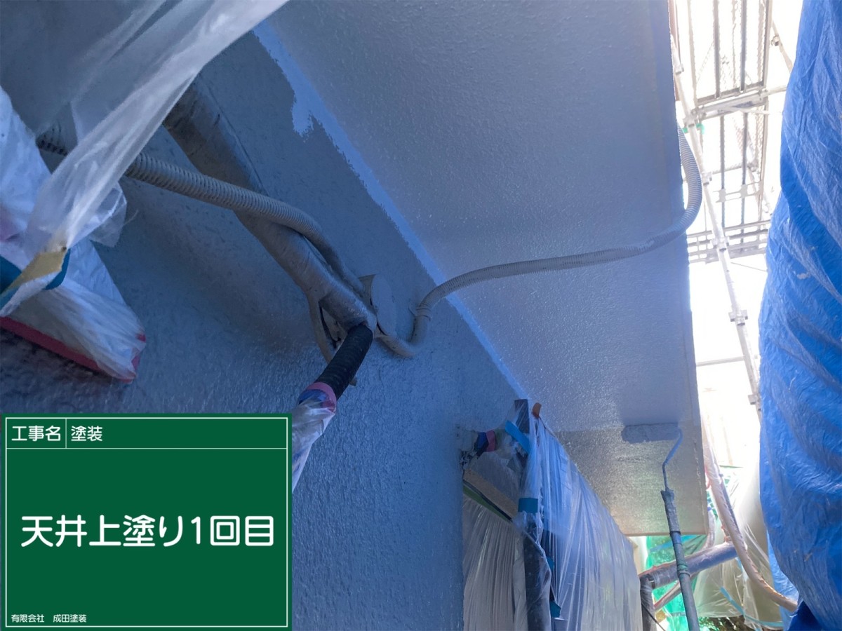 枚方市N様邸 こんにちはっ!!! 成田塗装の家原です°˖✧◝(⁰▿⁰)◜✧˖° 本日は枚方市N様邸の軒天井の上塗りです♪ 成田塗装では軒天井の上塗りを外壁と同じ色で塗らず軒天井用の塗料で仕上げます(*^^*) 軒天井の色を変えることで家全体の仕上がりにメリハリができます\(^o^)/ この塗料にはカビの抑制効果もあり 溶剤塗料特有の臭いも抑えられます(*^▽^*) 2026/04/04
