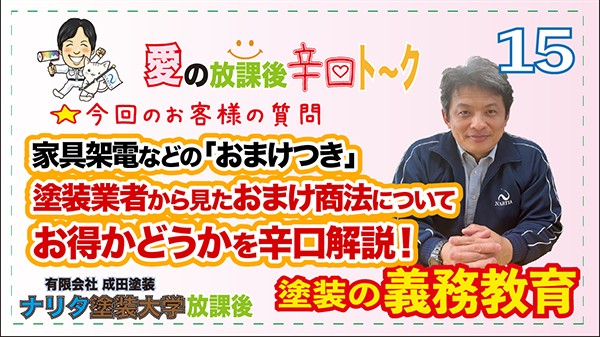 地域で長く塗装の仕事をしていると、「おまけしてくれるって言われた」という相談をよく受けます。外壁塗装でよくある「今回はサービスでやっておきますよ」という言葉は一見お得に聞こえますが、現場を知る職人の目線では注意が必要なケースも少なくありません。この動画では、地域密着で仕事をしてきた職人だからこそ感じる違和感や、ペンキ屋の“おまけ商法”が起きる理由、工事内容で必ず確認してほしいポイントを、実際の現場目線でお話ししています。塗装工事は家を長く守るための大切な工事だからこそ、その場の「お得そうな言葉」ではなく、工事内容で判断してほしいという思いを込めた内容です。これから外壁塗装を考えている方に、今回も辛口トークでお届けします!