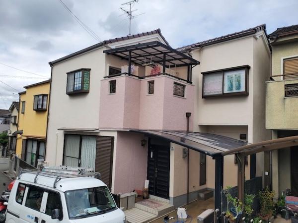 寝屋川市のお客様の自宅の塗り替え工事は、外壁塗装にアステックペイントのリファインMF(遮熱フッソ塗装)そして屋根塗装には日進産業の断熱ガイナを塗装。