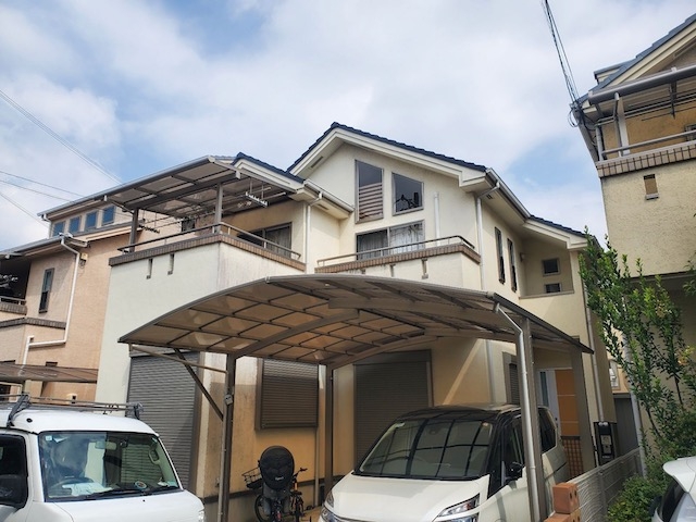 交野市のお客様は外壁が劣化して色褪せや細かいひび割れもありましたので塗り替えとなりました。