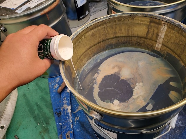 下塗りが硬化、乾燥すると上塗りにプラチナリファイン2000MF-IRを2回塗り