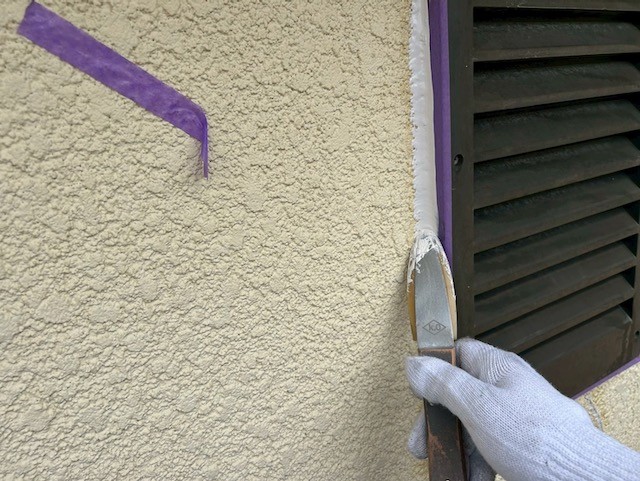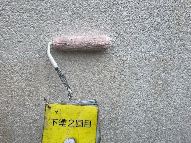 外壁には無数のひび割れとピンホールも目立つ状態でしたが、下塗りのフィラーでしっかりと厚みをつけてピンホールは全て消しました。