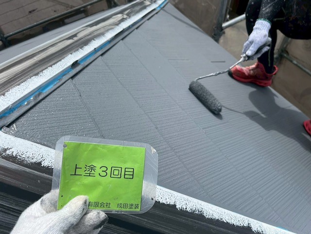 屋根には遮熱シーラー(サーモアイシーラー)をしっかりと塗装した上に断熱ガイナを塗装。