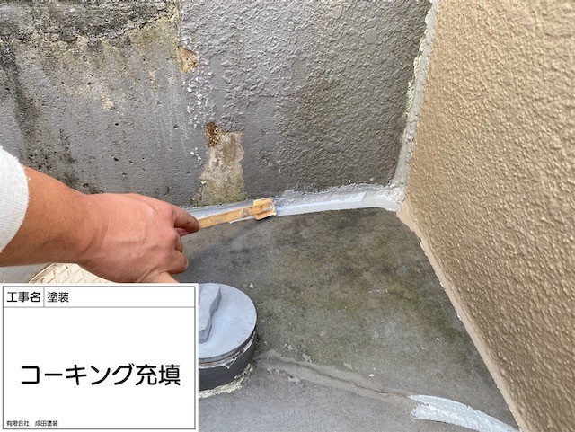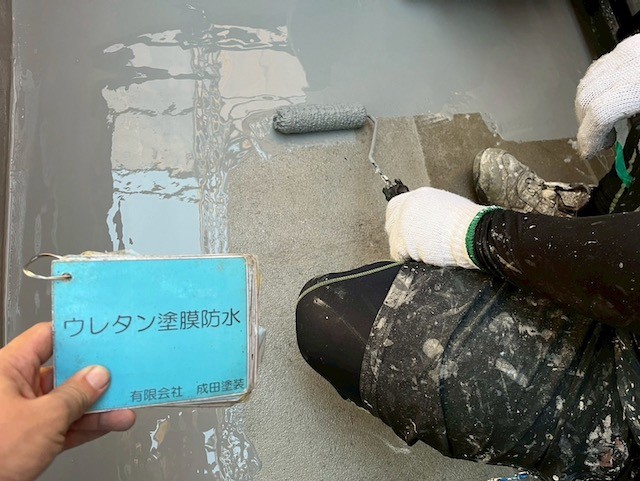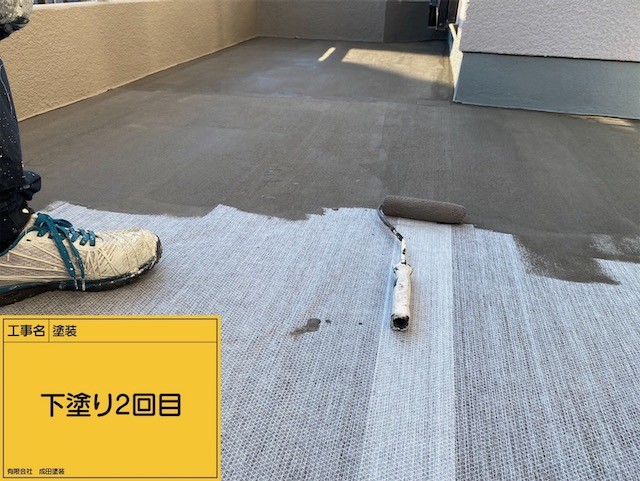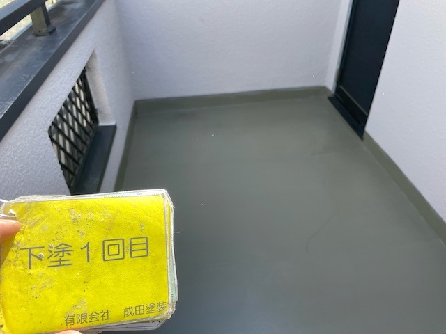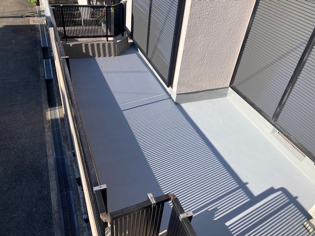 ベランダは傷んだ下地をしっかりと除去してウレタン塗膜防水を施工。