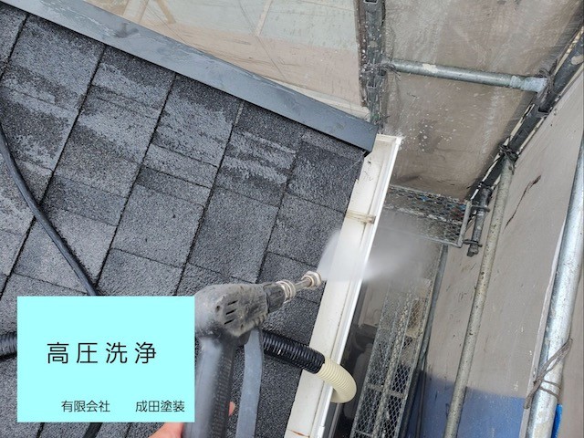 アスファルトシングルという屋根は油性の塗料を塗れないので下塗りも水性塗料を使用します。