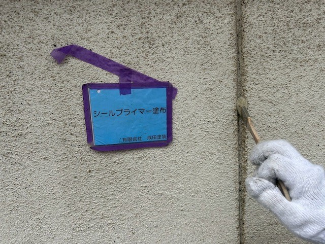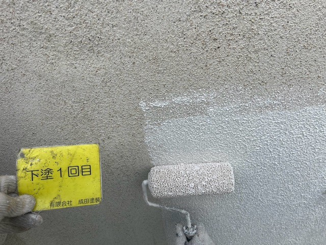 屋根はカラーベスト専用の下塗り遮熱塗料のサーモアイシーラーをたっぷり染み込ませて塗膜を作ります。