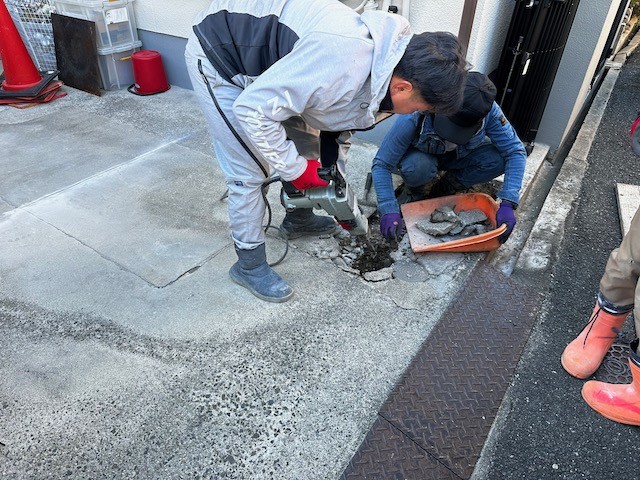 寝屋川市の寿町のお客様の家の土間の修理の施工です。
