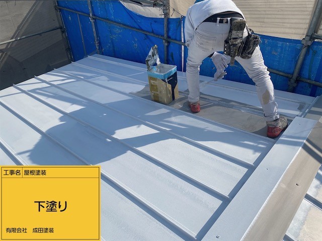 屋根も金属用の遮熱プライマーのサーモアイプライマー(金属屋根用)を塗るのですが、その前にもマジックロンで汚れや細かい傷をつけて下地処理します。