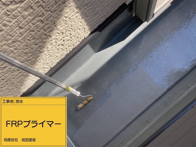 バルコニーの床はそれぞれシート防水箇所とFRP防水箇所に合わせて遮熱トップコート(東日本塗料)を施工。